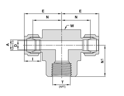 St. St. 316 FeOne-Lok® Tube Fitting Branch Tee, One-Lok® Tube Fitting 3/8” x One-Lok® Tube Fitting 3/8” x Female NPT 3/8”