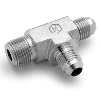 751HFSS3/8X1/2X, Stainless Steel 316 Tee, 37º Flare 3/8” x Male NPT Thread 1/2” x 37º Flare 3/8”