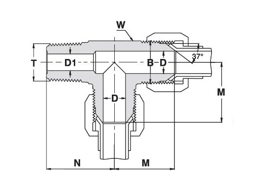 Stainless Steel 316 Tee, 37º Flare 3/8” x Male NPT Thread 1/2” x 37º Flare 3/8”