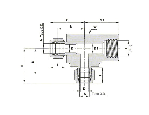 771LFB10MMX1/4, Brass Female Run Tee, Let-Lok® Tube Fitting 10mm x Female NPT 1/4” x Let-Lok® Tube Fitting 10mm