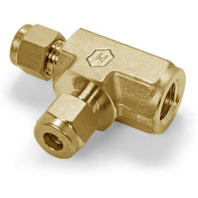 Brass Female Run Tee, Let-Lok® Tube Fitting 16mm x Female NPT 1/2” x Let-Lok® Tube Fitting 16mm