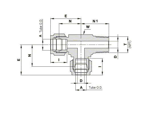 771LSS1/4X1/4, St. St. 316 Male Run Tee, Let-Lok® Tube Fitting 1/4” x Male NPT 1/4” x Let-Lok® Tube Fitting 1/4”