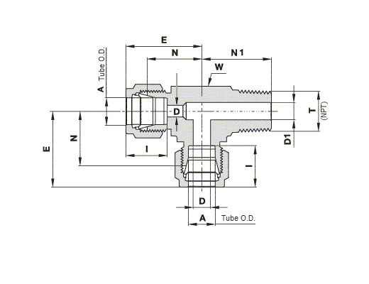 771LSS1/8X1/8, St. St. 316 Male Run Tee, Let-Lok® Tube Fitting 1/8” x Male NPT 1/8” x Let-Lok® Tube Fitting 1/8”
