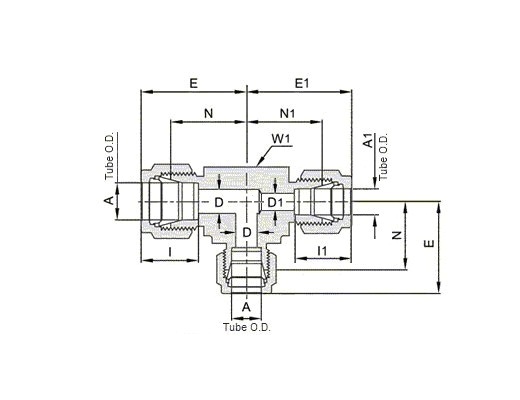 St. St. 316 Reducing Union Tee Let-Lok® Tube Fitting, 1/2” x 1/4” x 1/2”