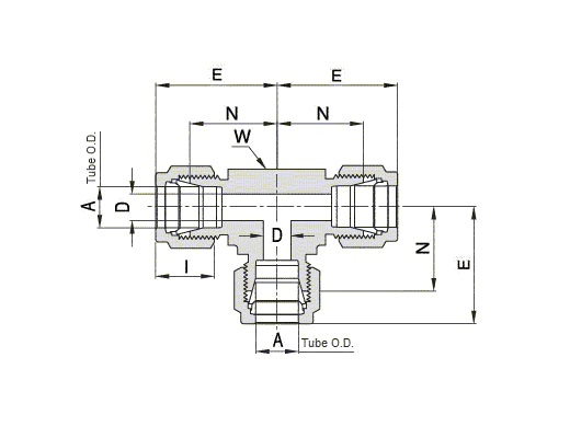 St. St. 316 Union Tee, Let-Lok® Tube Fitting, 8mm