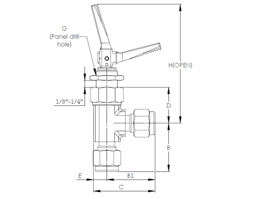 H1200BL1/8A, H1200 Series, Angled Pattern Brass Toggle Valve, 1/8” Let-Lok® Tube Fitting x 1/8” Let-Lok® Tube Fitting