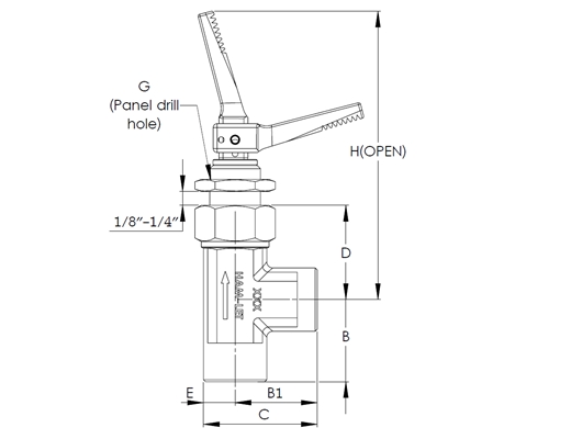 H1200 Series, Angled Pattern SS Toggle Valve, 1/8” Female NPT Thread x 1/8” Female NPT Thread
