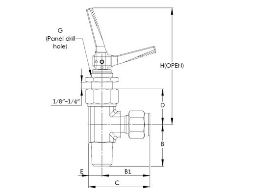 H1200 Series, Angled Pattern Brass Toggle Valve, 1/8” Male NPT Thread x 1/8” Let-Lok® Tube Fitting