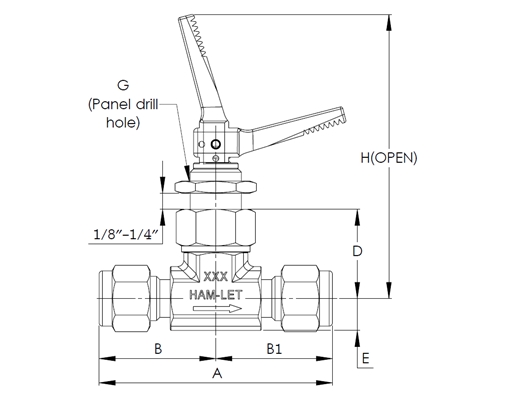 H1200 Series, Brass Toggle Valve, 3mm Let-Lok® Tube Fitting x 3mm Let-Lok® Tube Fitting