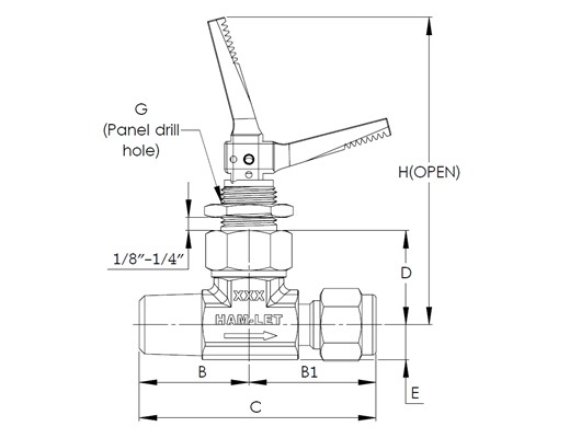 H1200 Series, Brass Toggle Valve, 1/8” Male NPT Thread x 1/8” Let-Lok® Tube Fitting