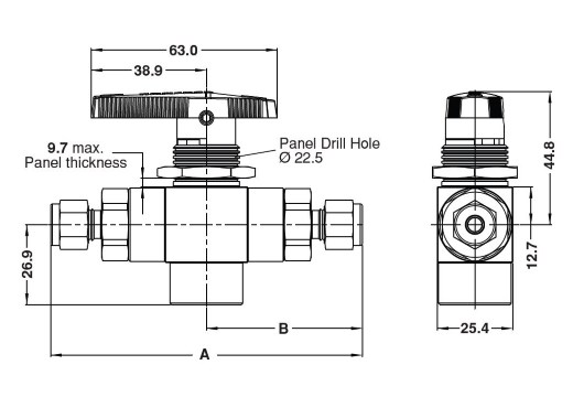 3 Port Stainless Steel 316 Trunnion Ball Valves, Connection: 3/8” Let-Lok® Tube Fitting