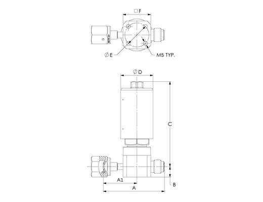 HM Series, Low Pressure UHP Actuated Valve, Swivel Female Face Seal 1/4” x Male Face Seal 1/4”