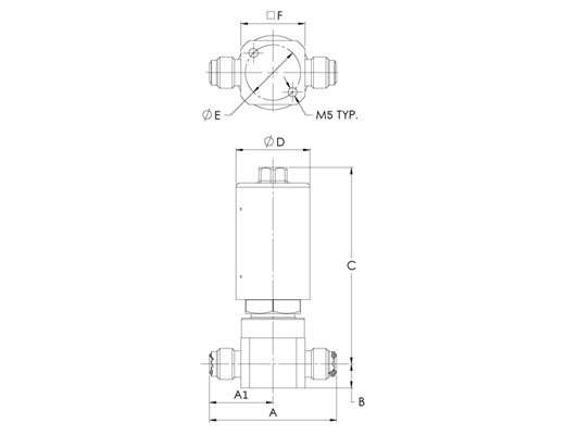 HM Series, Low Pressure UHP Actuated Valve, Male Face Seal 1/4”