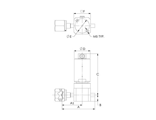 HM Series, Low Pressure UHP Actuated Valve, Swivel Female Face Seal 1/4” x Short Buttweld 1/4”