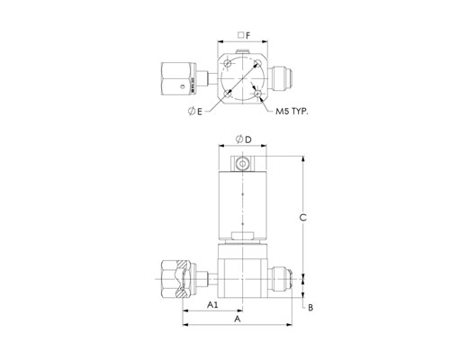 HM Series, Low Pressure UHP Actuated Valve, Swivel Female Face Seal 1/4” x Male Face Seal 1/4”