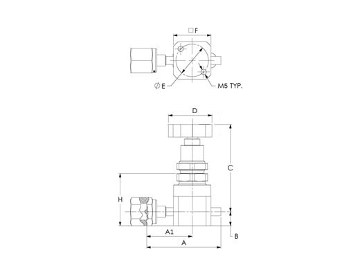 HM Series, Low Pressure UHP Manual Valve, Short Buttweld 1/4” x Swivel Female Face Seal 1/4”