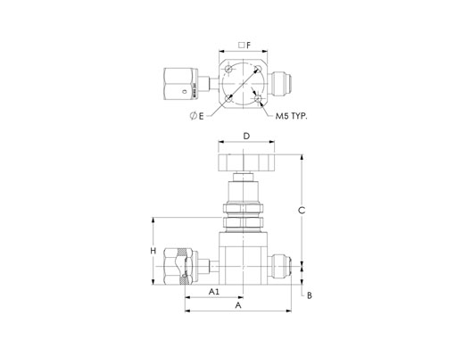 HM Series, Low Pressure UHP Manual Valve, Swivel Female Face Seal 1/4” x Male Face Seal 1/4”