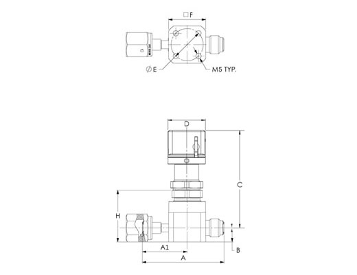 HM Series, Low Pressure UHP Manual Valve, Swivel Female Face Seal 1/4” x Male Face Seal 1/4”