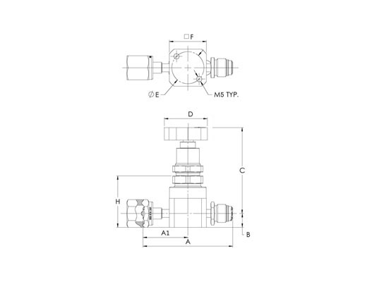 HM Series, Low Pressure UHP Manual Valve, Swivel Male Face Seal 1/4” x Swivel Female Face Seal 1/4”
