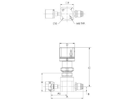 HM Series, Low Pressure UHP Manual Valve, Swivel Male Face Seal 1/4” x Swivel Female Face Seal 1/4”