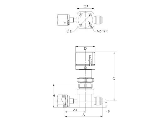 HM Series, Low Pressure UHP Manual Valve, Male Face Seal 1/4” x Swivel Female Face Seal 1/4”