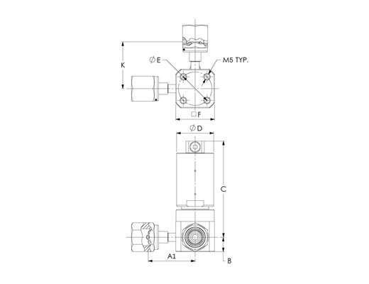 HM Series, Low Pressure UHP Actuated Valve, Swivel Female Face Seal 1/4”
