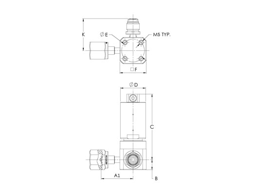 HM Series, Low Pressure UHP Actuated Valve, Swivel Female Face Seal 1/4” x Swivel Male Face Seal 1/4”