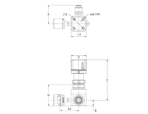 HM224VKLQGF4GM4ISLT, HM Series, Low Pressure UHP Manual Valve, Swivel Female Face Seal 1/4” x Swivel Male Face Seal 1/4”