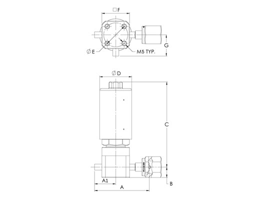 HM304VKCBW4BW4GF4, HM Series, Low Pressure UHP Actuated 3 Port Valve, Short Buttweld 1/4” x Short Buttweld 1/4” x Swivel Female 1/4”