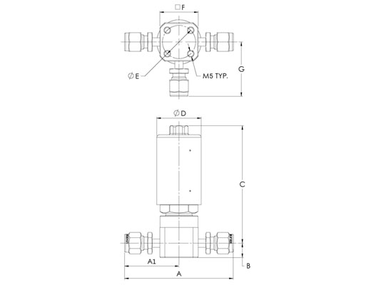 HM Series, Low Pressure UHP Actuated 3 Port Valve, 1/4” x 1/4”