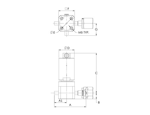 HM304VKLCBW4BW4GF4, HM Series, Low Pressure UHP Actuated 3 Port Valve, Short Buttweld 1/4” x Short Buttweld 1/4” x Swivel Female 1/4”