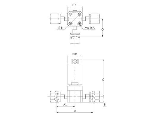 HM Series, Low Pressure UHP Actuated 3 Port Valve, 1/4” x 1/4”