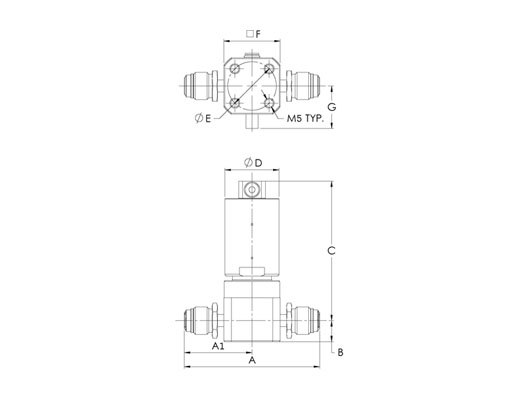 HM304VKLCGM4BW4GM4, HM Series, Low Pressure UHP Actuated 3 Port Valve, Swivel Male 1/4” x Short Buttweld 1/4” x Swivel Male 1/4”