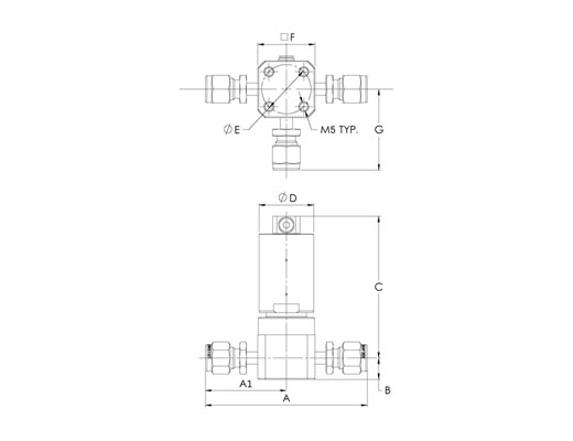 HM Series, Low Pressure UHP Actuated 3 Port Valve, 1/4” x 1/4”