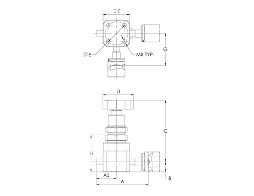 HM Series, Low Pressure UHP Manual 3 Port Valve, Short Buttweld 1/4” x Swivel Female 1/4” x Swivel Female 1/4”