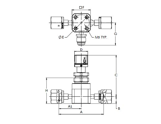 HM Series, Low Pressure UHP Manual 3 Port Valve, Swivel Female 1/4” x Swivel Male 1/4” x Swivel Female 1/4”