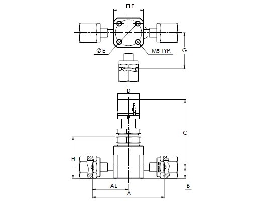 HM Series, Low Pressure UHP Manual 3 Port Valve, 1/4” x 1/4”