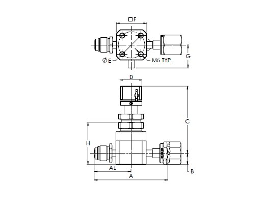 HM Series, Low Pressure UHP Manual 3 Port Valve, Swivel Male 1/4” x Short Buttweld 1/4” x Swivel Female 1/4”