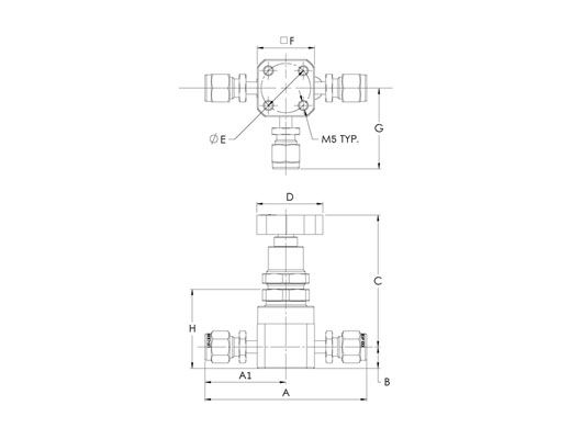 HM Series, Low Pressure UHP Manual 3 Port Valve, 1/4” x 1/4”