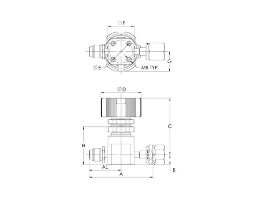 HM Series, Low Pressure UHP Manual 3 Port Valve, Swivel Male 1/4” x Short Buttweld 1/4” x Swivel Female 1/4”