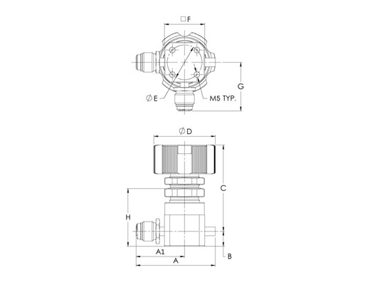 HM Series, Low Pressure UHP Manual 3 Port Valve, Swivel Male 1/4” x Swivel Male 1/4” x Short Buttweld 1/4”
