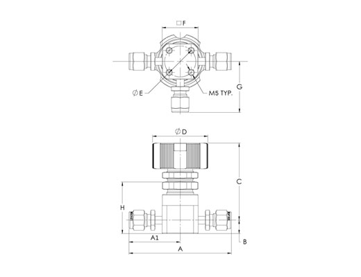 HM Series, Low Pressure UHP Manual 3 Port Valve, 1/4” x 1/4”