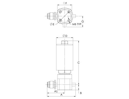 HM Series, Low Pressure UHP Actuated 3 Port Valve, Short Buttweld 1/4” x Short Buttweld 1/4” x Swivel Male 1/4”