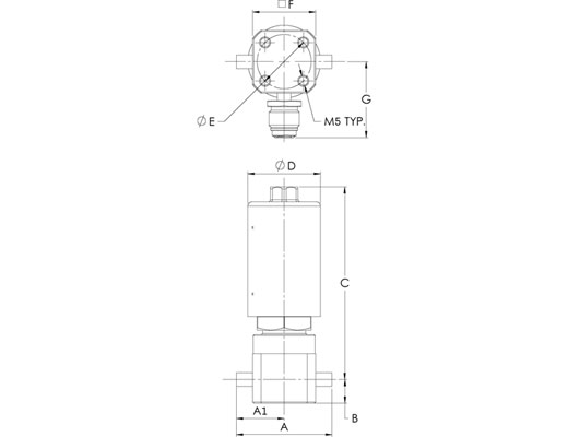 HM314VKCGM4BW4BW4, HM Series, Low Pressure UHP Actuated 3 Port Valve, Swivel Male 1/4” x Short Buttweld 1/4” x Short Buttweld 1/4”