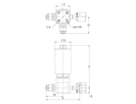HM Series, Low Pressure UHP Actuated 3 Port Valve, Swivel Male 1/4” x Swivel Female 1/4” x Swivel Male 1/4”