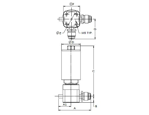 HM Series, Low Pressure UHP Actuated 3 Port Valve, Swivel Male 1/4” x Swivel Male 1/4” x Short Buttweld 1/4”