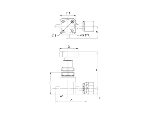 HM314VKLQBW4GF4BW4, HM Series, Low Pressure UHP Manual 3 Port Valve, Short Buttweld 1/4” x Swivel Female 1/4” x Short Buttweld 1/4”
