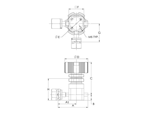 HM324VKLCGF4GF4BW4, HM Series, Low Pressure UHP Manual 3 Port Valve, Swivel Female 1/4” x Swivel Female 1/4” x Short Buttweld 1/4”