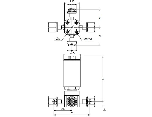 HM Series, Low Pressure UHP Actuated 4 Port Valve, Swivel Female 1/4”