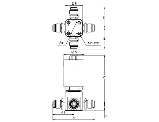 HM Series, Low Pressure UHP Actuated 4 Port Valve, Swivel Male 1/4”